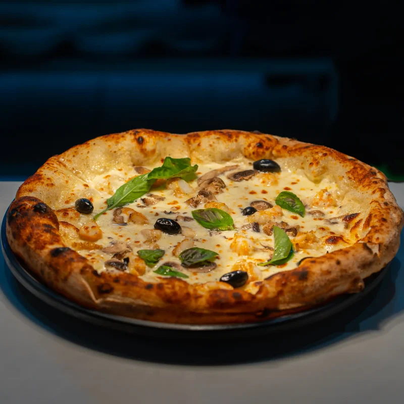 Pizza Burrattina Sauce pesto, mozzarella, roquettes, burratta, tomates cerises, grana padano Valeurs nutritionnelles (pour 100 g) ⚡ Énergie 280 kcal 🥩 Protéines 9 g 🍞 Glucides 30 g 🧈 Lipides 14 g 🧂 Sel 1,2 g Revenir au menu